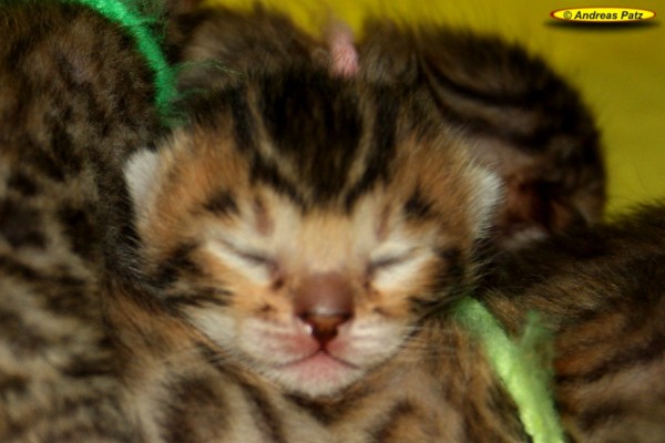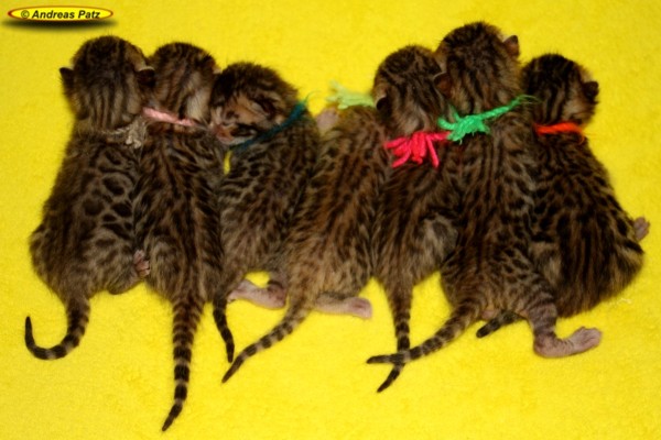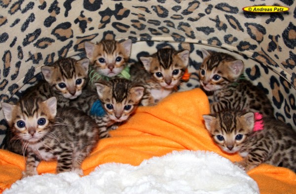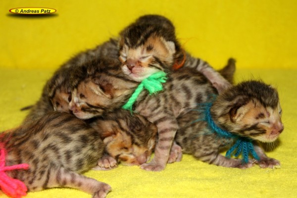Mai 2015 - Bengalkitten von Wilma Hier die aktuellen Bilder unserer Bengalkitten vom 04.Mai 2015. Diese Kitten werden alle kleine Fernseh-Stars. Ein Kamerateam eines großen deutschen TV-Senders hat die Geburt und die ersten Tage der Kleinen gefilmt. Wir informieren euch rechtzeitig wo und wann der Beitrag ausgestrahlt wird. Wenn Ihr Interesse an einem oder zwei Bengalkitten von uns habt, nehmt bitte über unser Kontaktformular, per Mail an Info@Bengal24.de oder telefonisch Kontakt mit uns auf. Telefon: 02771/320250 (14:30 - 20:00 Uhr)
